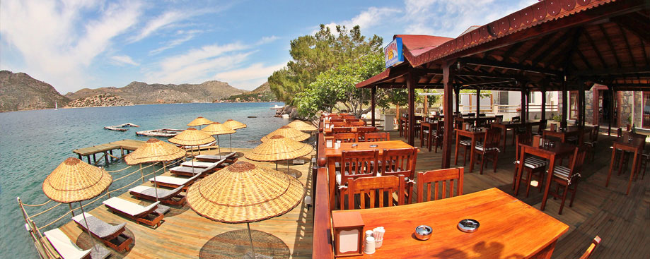 Veranda Hotel 6 yelkenli kapasiteli iskelesiyle denizden gelen misafirlerini de ağırlamak için bekliyor. Dilerseniz sadece restaurantımızda da zaman geçirebilir, Bozburun'un en taze balıkları, Akdeniz'in en lezzetli mezeleriyle ve diğer özel menülerimiz ile keyifli anlar geçirebilirsiniz.